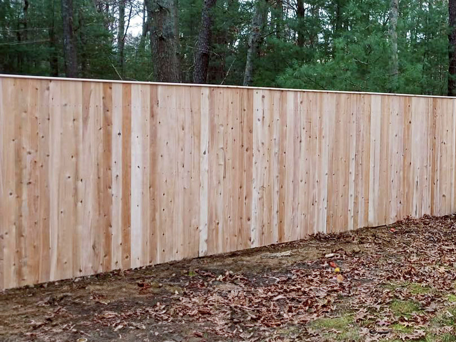 Full-privacy wood stockade fences are a true local favorite! Our wood fences are a great choice for both homes and businesses in Carver Massachusetts.